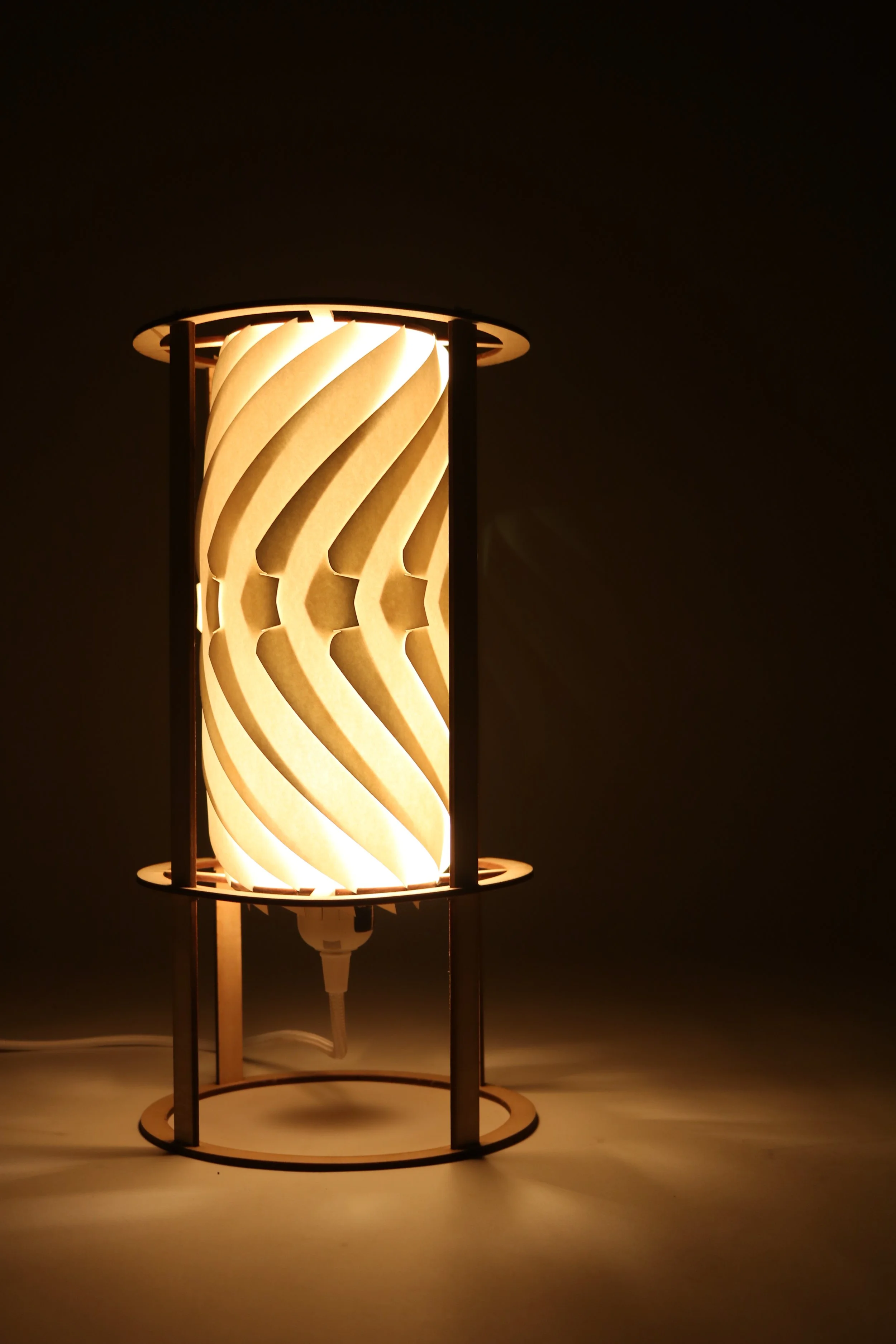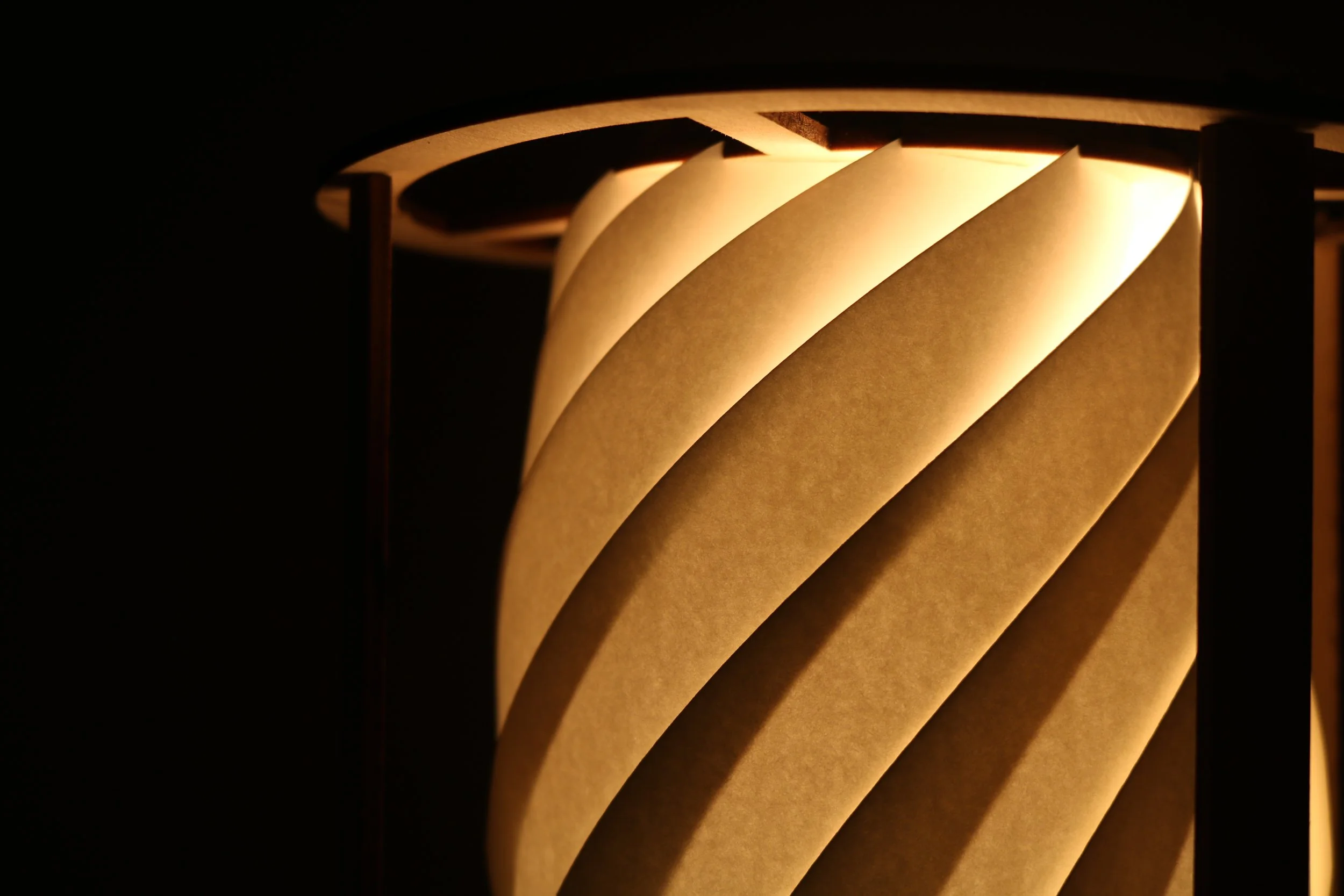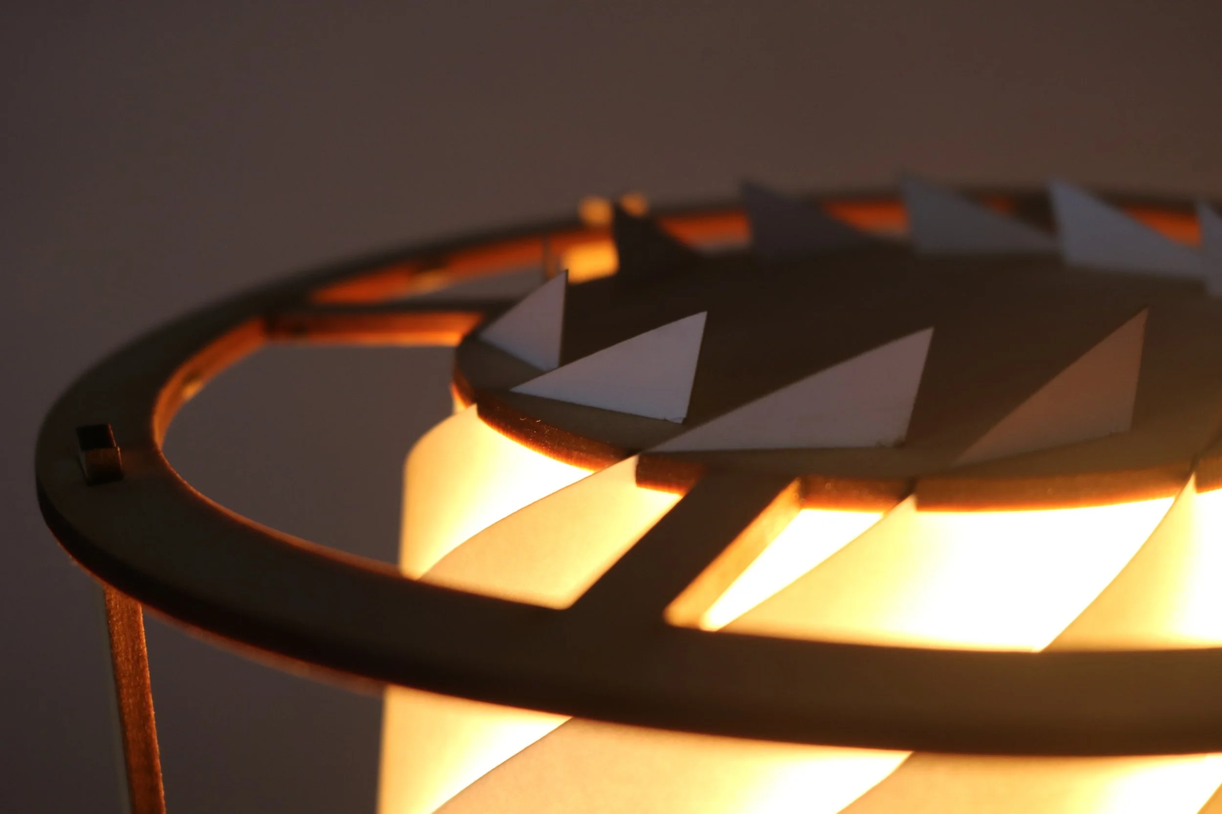 This project aimed to create a product that produced an interesting lighting and shadow design. When deconstructed, the luminaire can be flat-packed to allow for less package material waste. The outcome is an elegant light fixture that provides soft, ambient light.